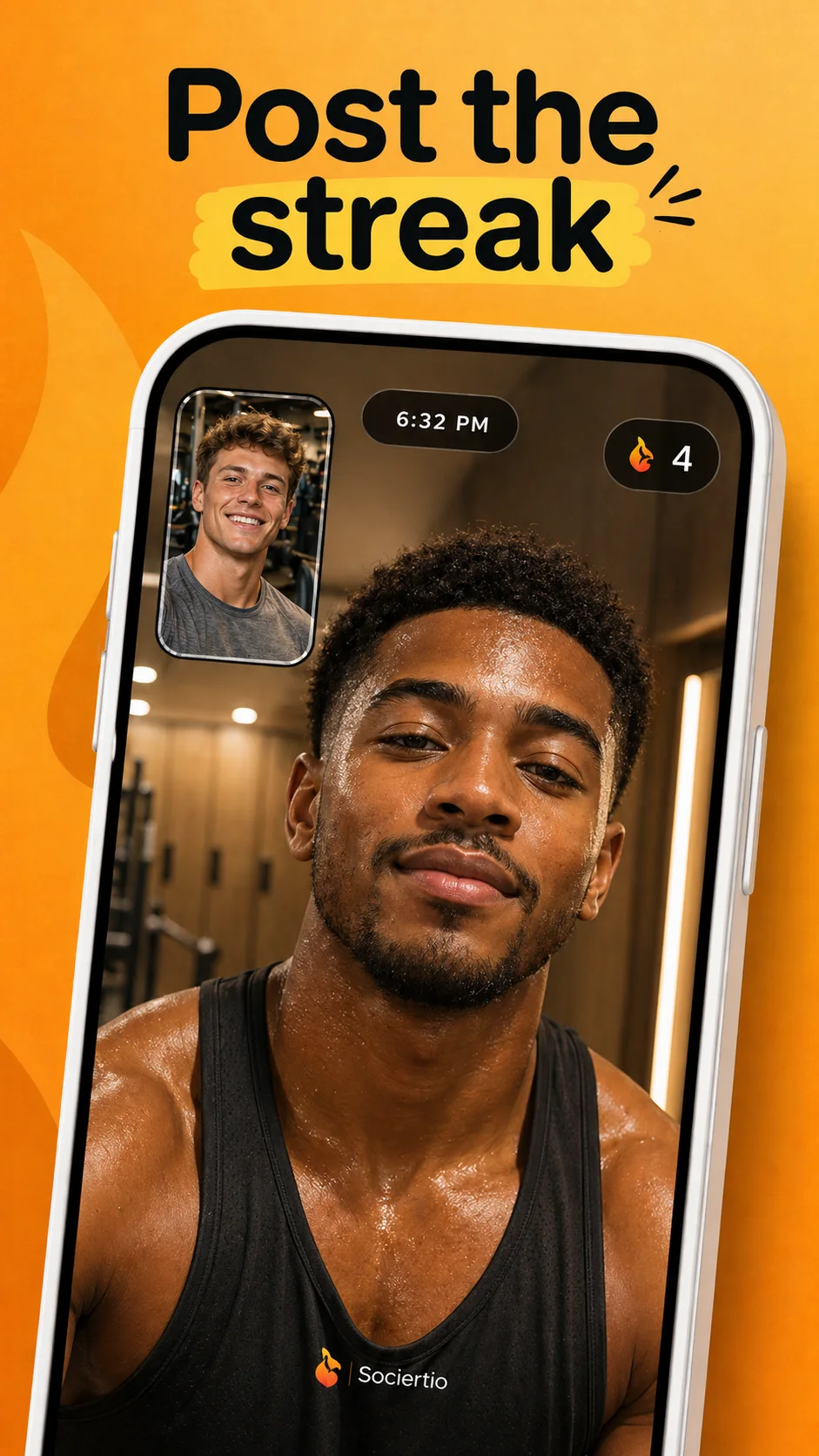 Sociertio uses account, streak, check-in, notification, photo, and subscription data only to run the app experience. Your auth credentials, payment details, private session tokens, and device notification token are not shared with your buddy.